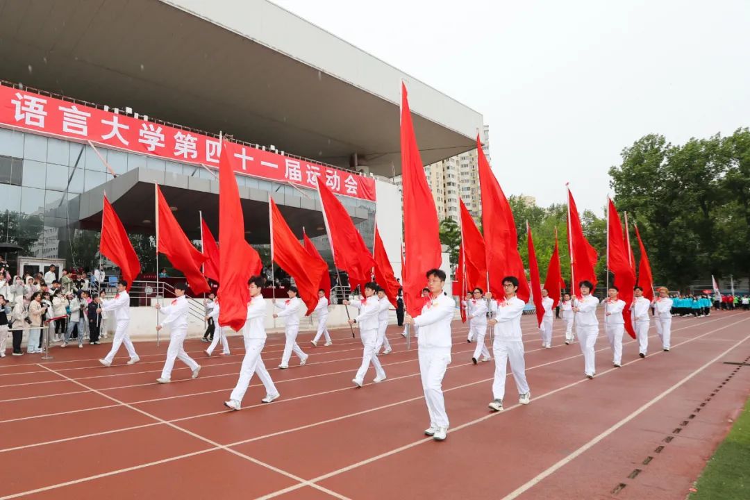 2023年4月21日,沐浴着四月的春风,伴随着激昂的歌曲,欢呼声点燃了校园的清晨,北京语言大学第41届运动会在风雨操场拉开了序幕。