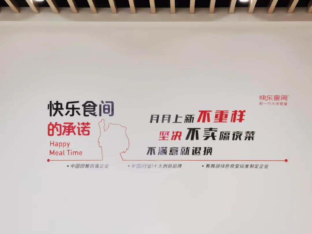 “月月上新不重样,坚决不卖隔夜菜,不满意就退换。”在三楼电梯拐角处的墙壁上“快乐食间的承诺”旁写着这么一段话。经理向我们介绍,月月上新不重样是快乐食间的一大特色。“我们会与其他食堂错位经营,根据师生需求设置品类,选择多,变化快,尝鲜不重样。”经理解释道。