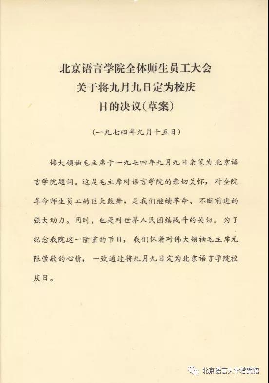 从此,9月9日便成为了北京语言大学的校庆日。这段往事不仅是学校的光荣,也是每个北语人的光荣。它将一直刻在我们的心里,永远都不会消退。